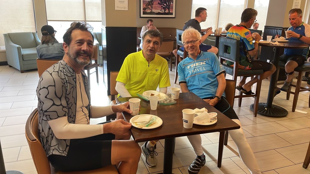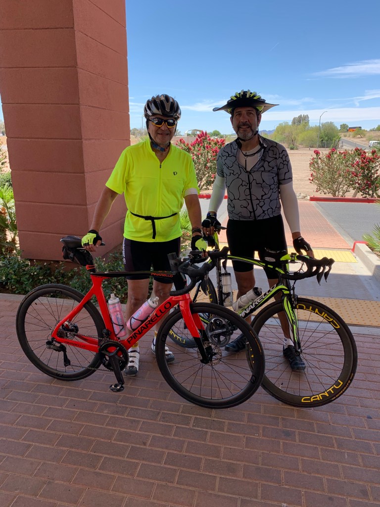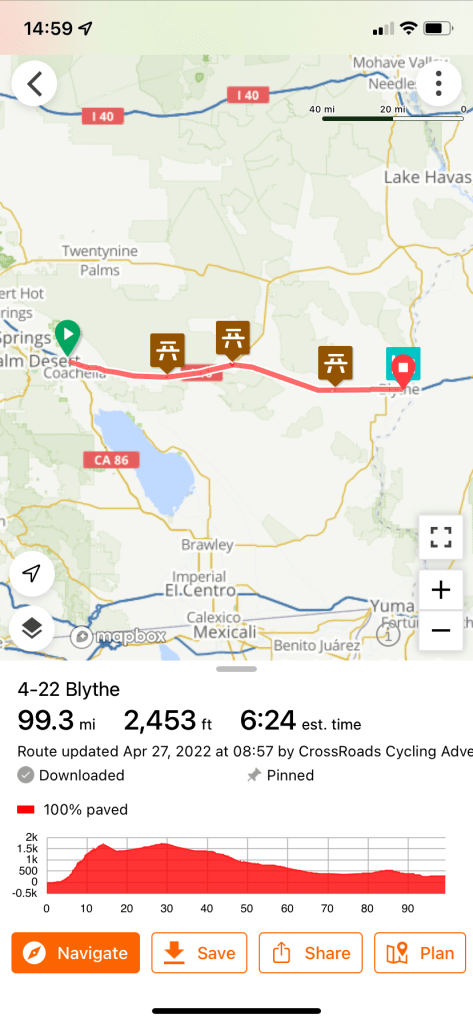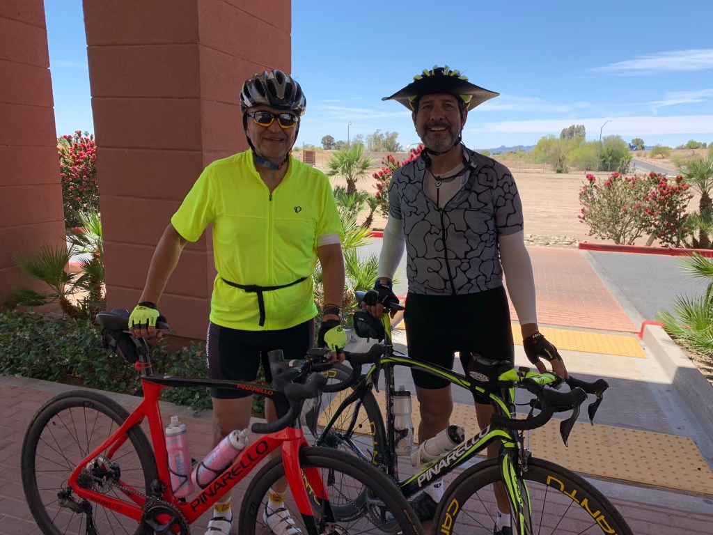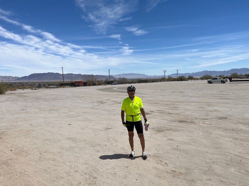 arrived at Blythe Calif . Not fun riding along I10 ,, crazy w semi trucks going by and dirty shoulders ! Not much room . Tonight we have catered BBQ for dinner at Hampton inn ! Very desert like place π³